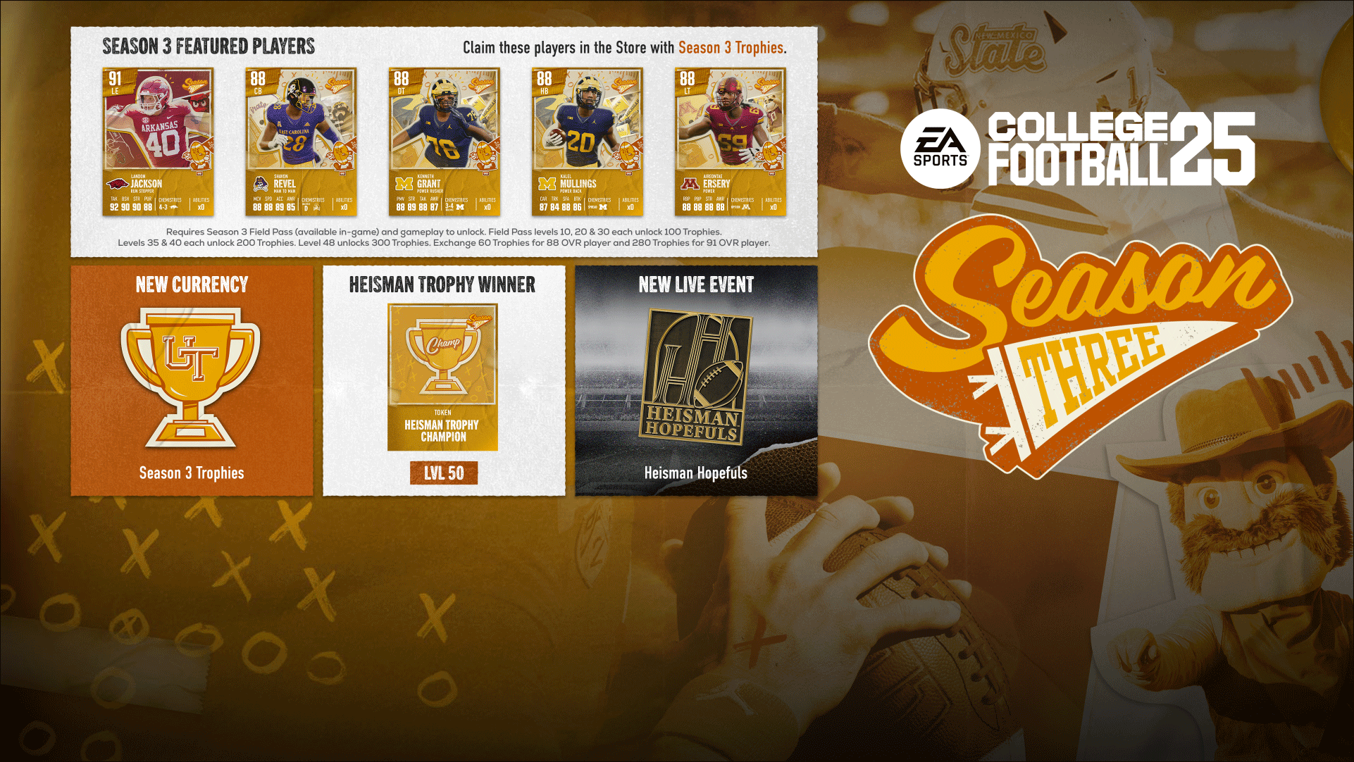 In addition, this program including our Heisman tie-in, allowing players to earn a Heisman Token in the Field Pass which would be redeemable for the Heisman Trophy winner once it was awarded in real life.